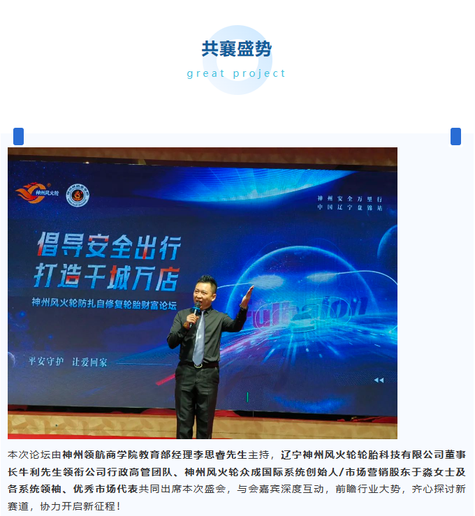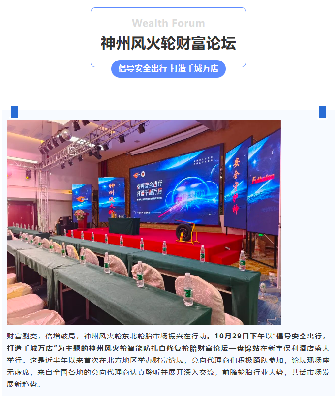 【盤錦站】“倡導(dǎo)安全出行,打造千城萬店”神州風(fēng)火輪智能防扎自修復(fù)輪胎財(cái)富論壇